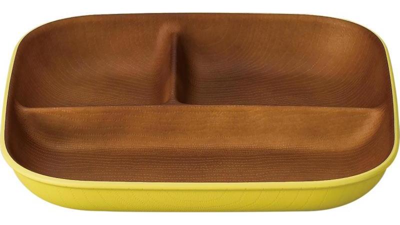 【462ポイント還元中】issoecco 木目スクエアワンプレート L(イエロー)